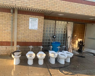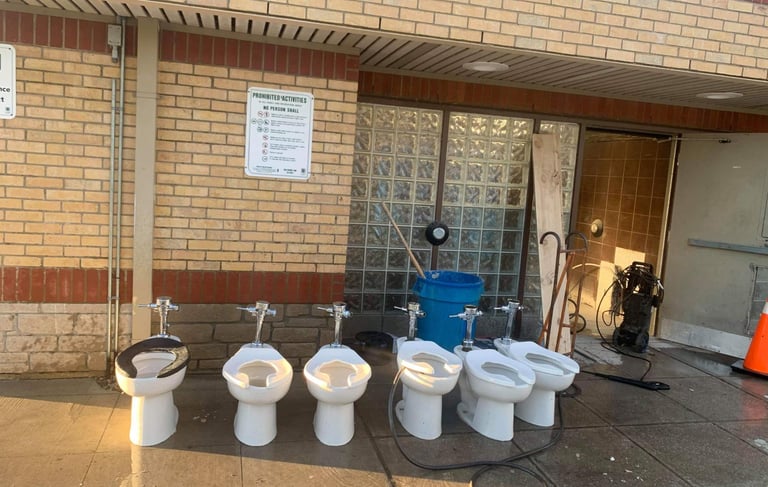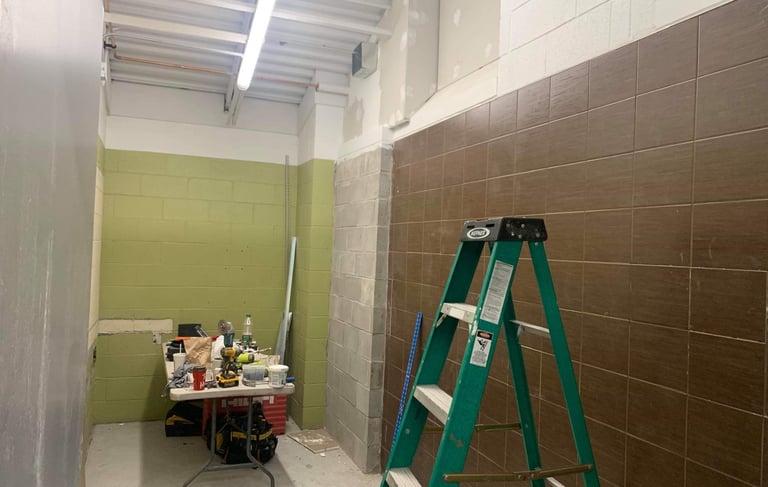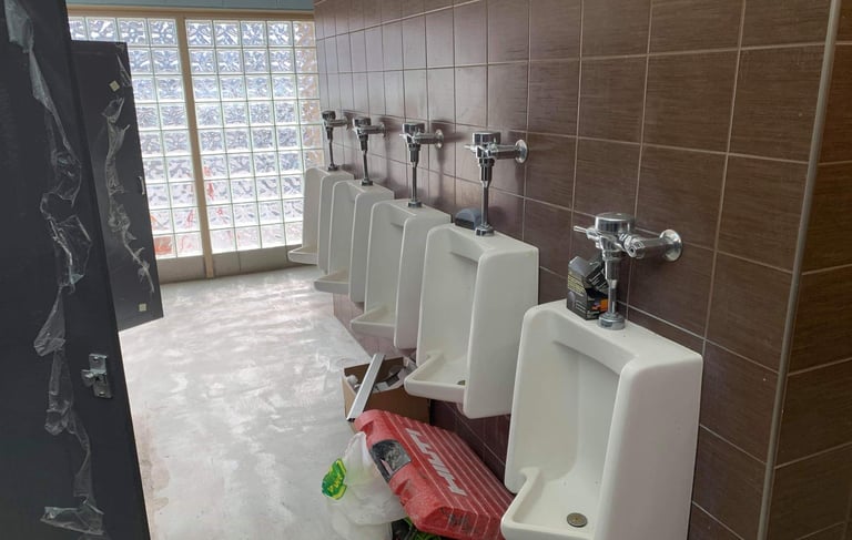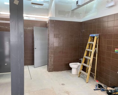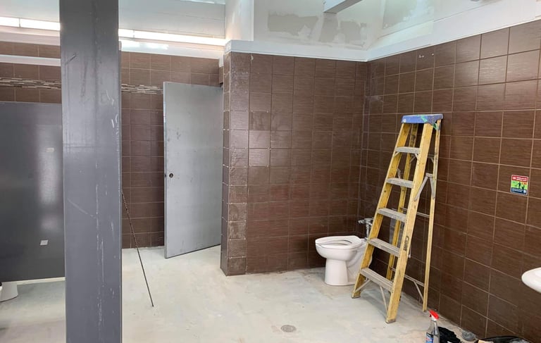Demolition & Rebuild: Full removal of existing washroom facilities and construction of new structures.